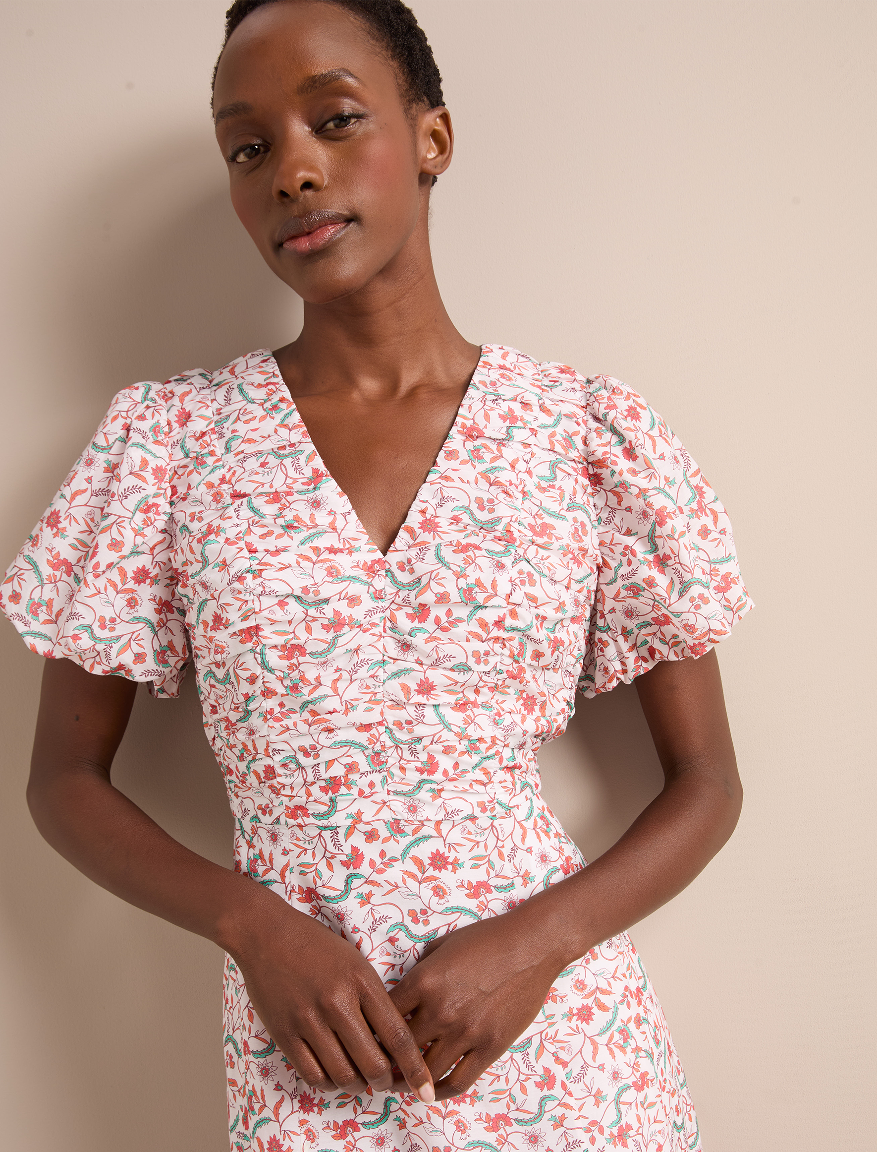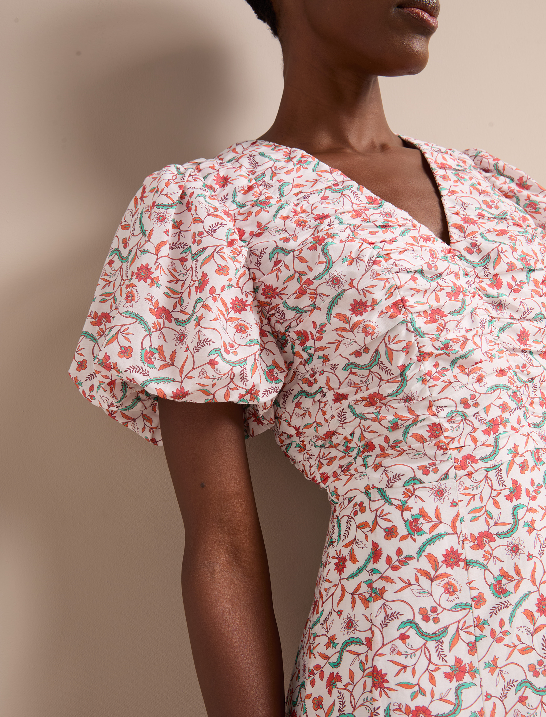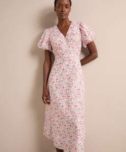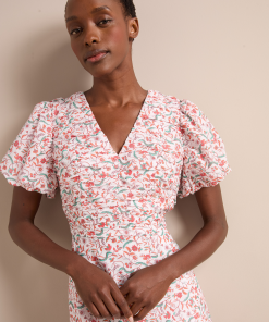 Elisa Silk Blend Midi Dress – Red Trailing Feather Print