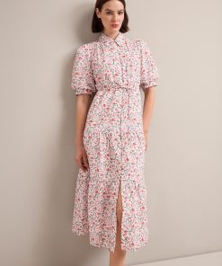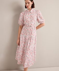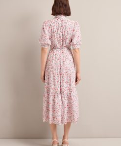 Poppy Silk Blend Maxi Dress – Red Trailing Feather Print